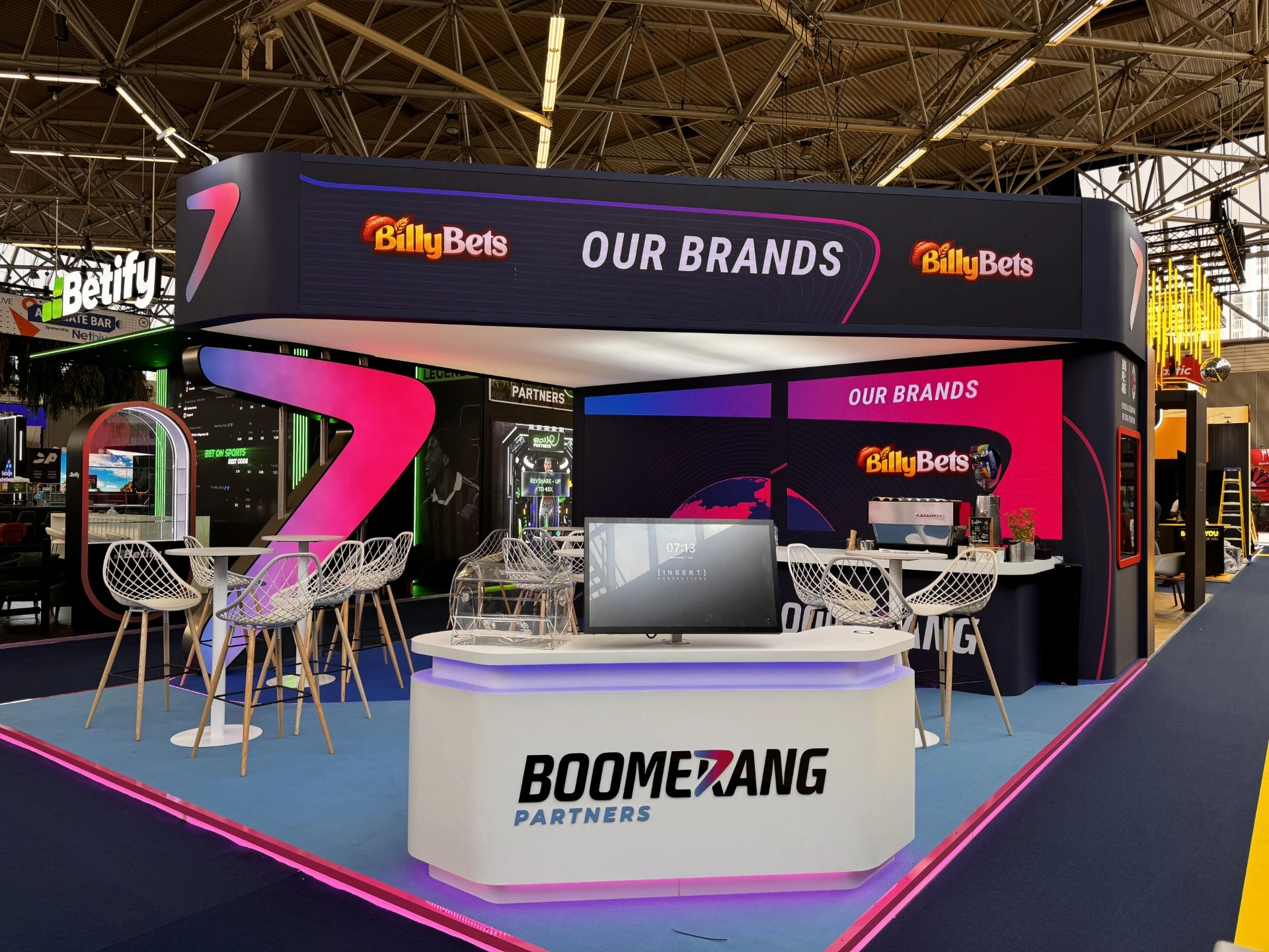 For BOOMERANG, during iGB L!VE in Amsterdam (2024), we delivered a project tailored to the specific nature of the event, the venue requirements, and the exhibition schedule. The scope of work included technical design, equipment supply, installation, and on-site technical support. The LED systems were fully integrated into the booth structure, ensuring high visibility, visual consistency, and stable operation throughout the entire event. The project was executed in Amsterdam, NL, in close cooperation with the event organizer and other subcontractors, in full compliance with applicable safety standards and venue regulations.