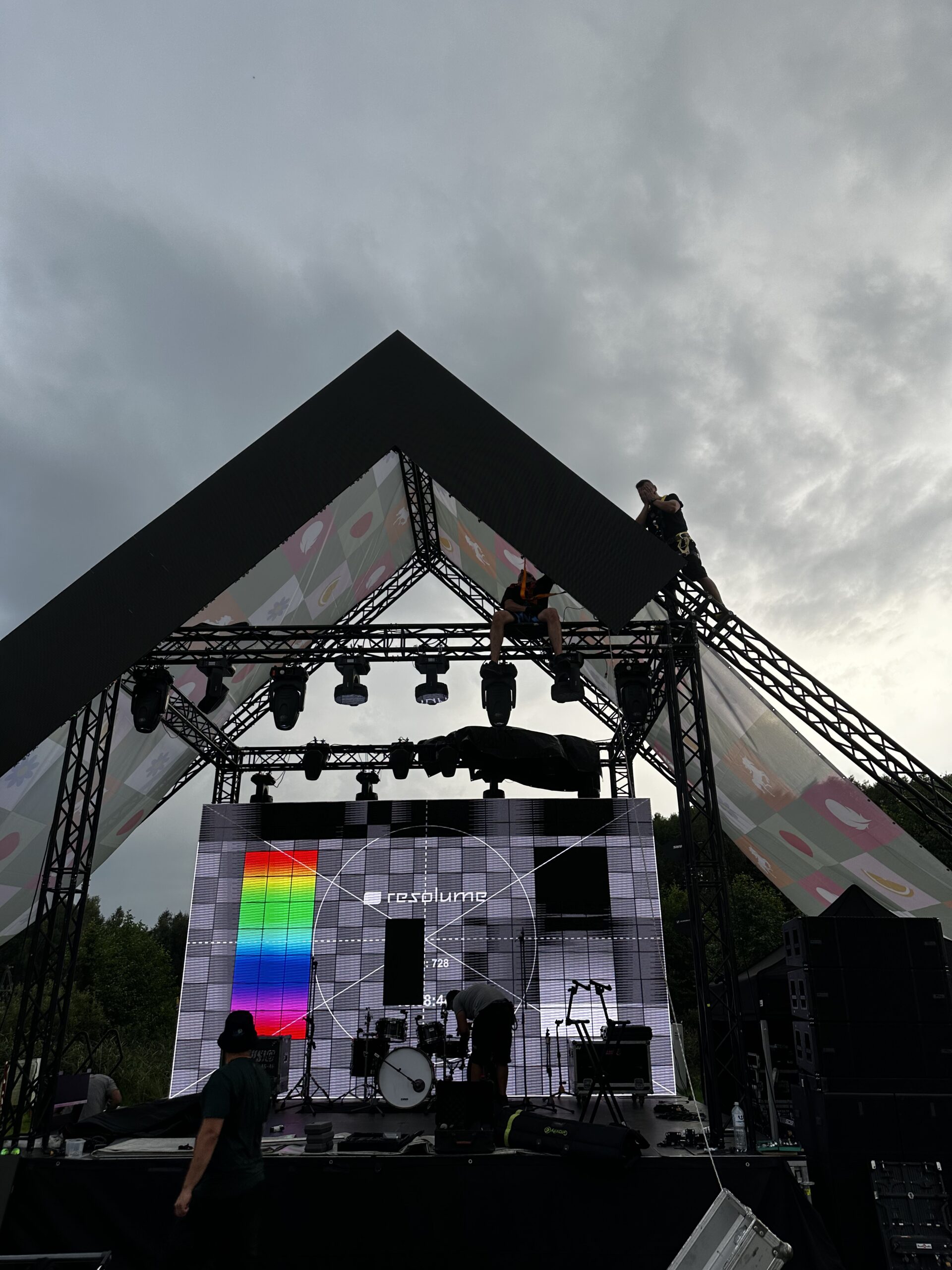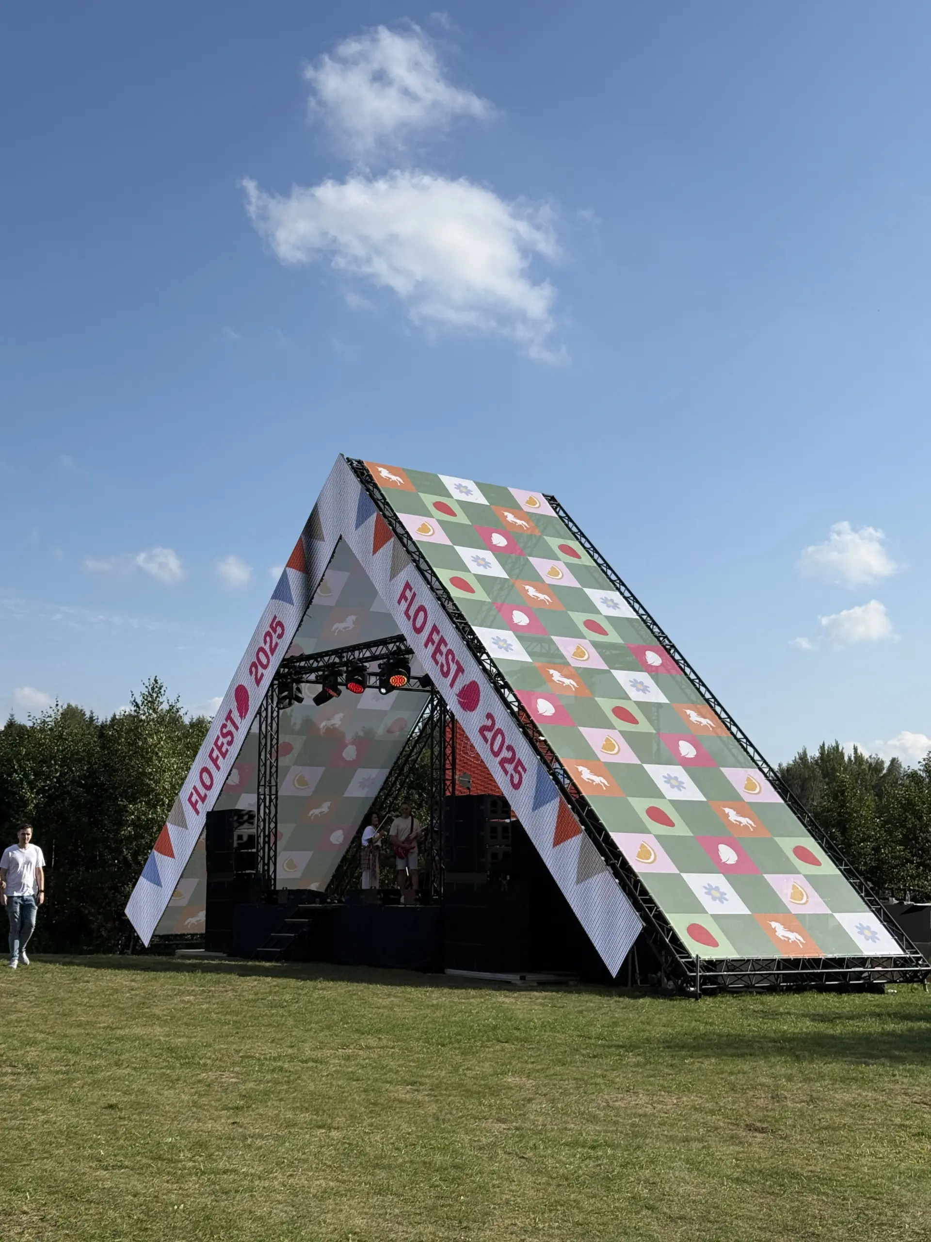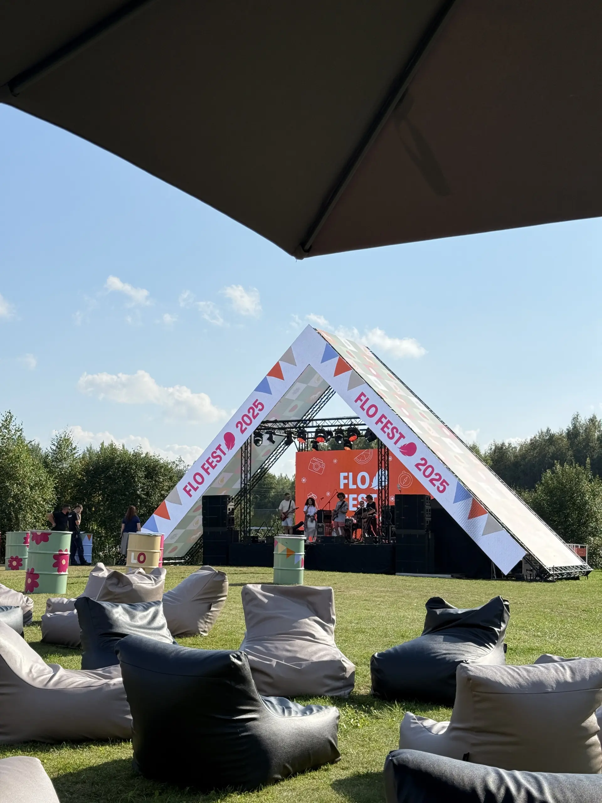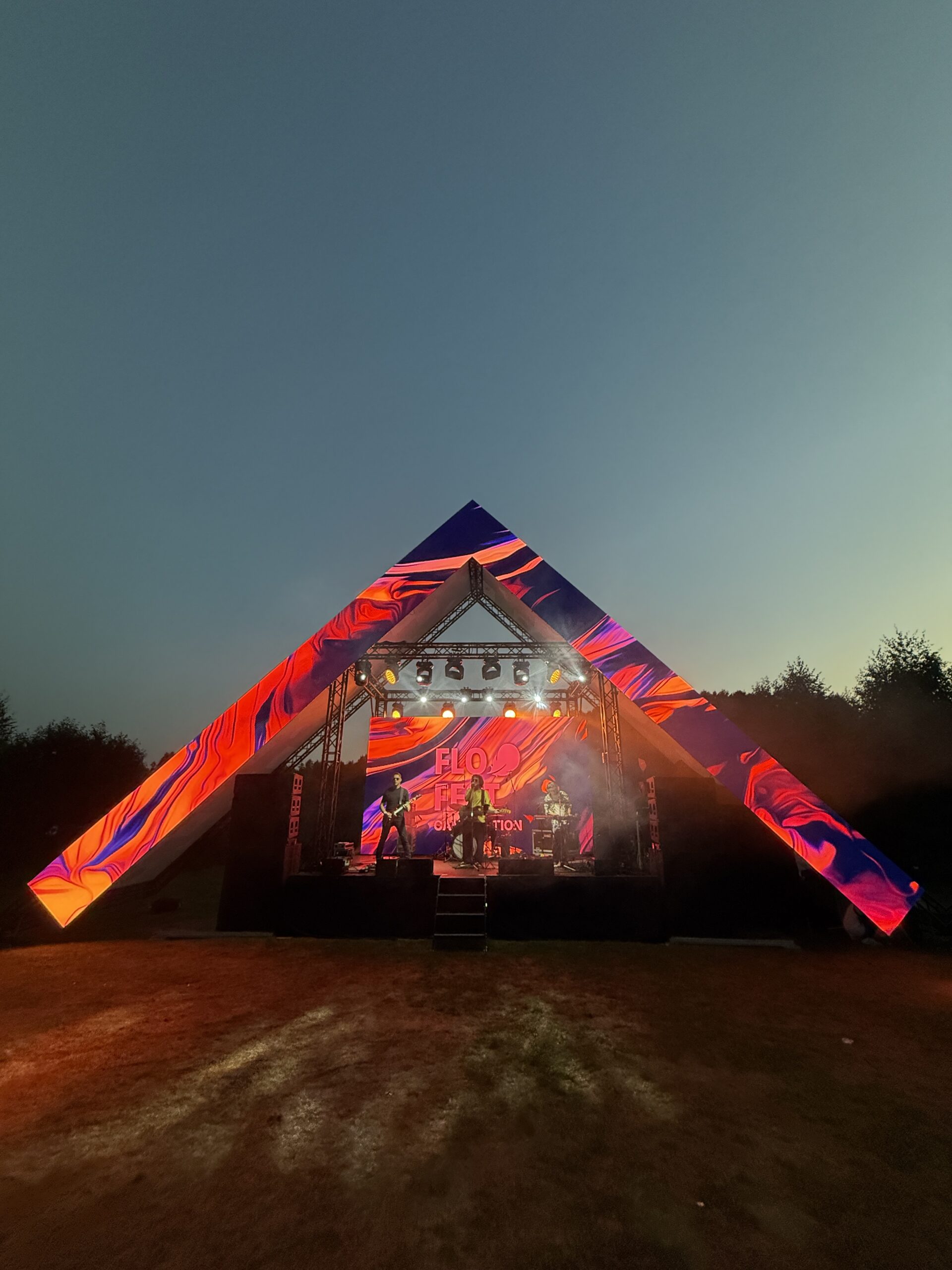 For FLO, during FLO FEST 2025 Camp edition, we developed a corporate event concept in a scout camp. The scope of work included the design and construction of a custom main scenography structure in the form of a large hut, integrated with an LED system, concert lighting, and professional sound. Additionally, we designed and fully equipped five supplementary zones dedicated to workshops, catering, activities, and the afterparty. The project was executed in Vilnus, LT, in close collaboration with the agency and the venue, with full onsite technical support and in accordance with all applicable safety standards.
